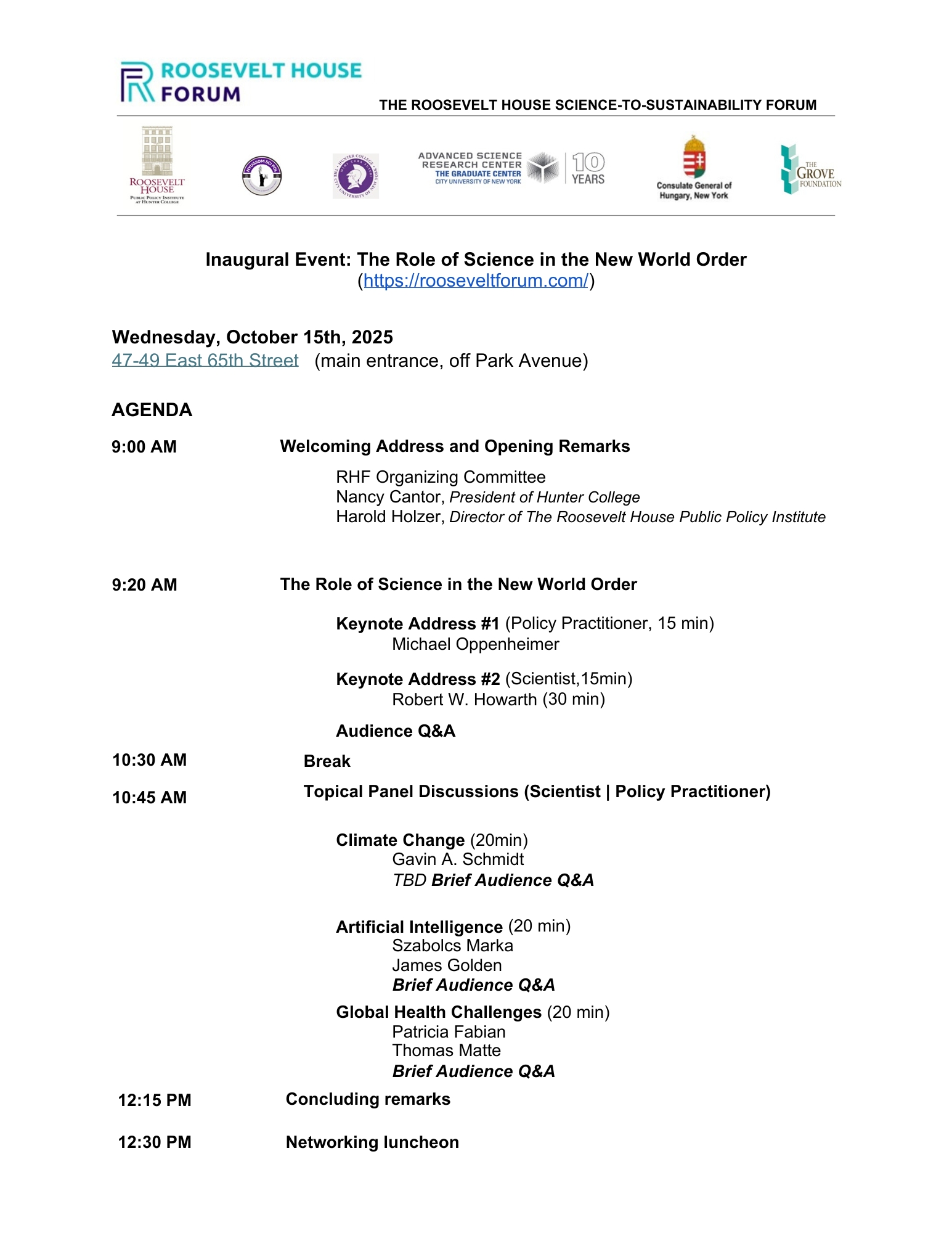 Inaugural Event: The Role of Science in the New World Order